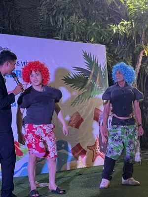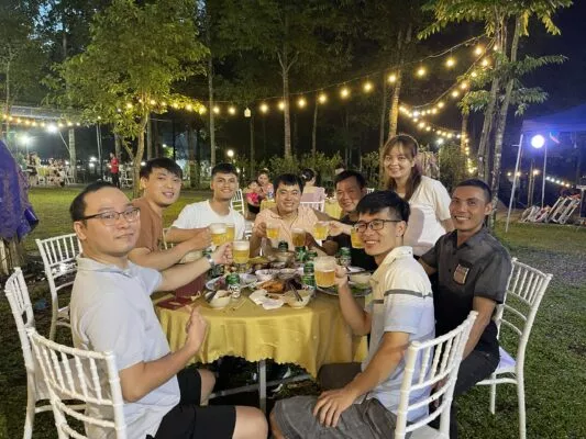 Chơi thỏa thích thì lại phải say cùng nhau, nhưng trước khi say, chúng tôi cùng lắng nghe tâm sự, chia sẽ của Ban lãnh đạo, các bạn Leader và toàn thể nhân viên, là dịp để mọi người trải lòng cùng nhau, hiểu nhau hơn, gắn kết hơn. Tiệc tối BBQ diễn ra đầm ấm, sôi động với các tiết mục văn nghệ “Cây nhà lá vườn” và đan xen những trò chơi không kém phần hấp dẫn.