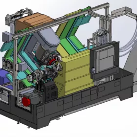 ハイテクスデザインベトナムは日本の設計会社と協力して、韓国と中国の顧客向け、フライス盤、CNC旋盤などの工作機械製品を設計しています。設計する製品は高精度の要件を満たし、剛性や強度や寿命などの技術的な仕様も担う必要があります。お客様のご要望により、機械全体構造の検討を行います。強度解析を行い、静荷重と動荷重が作動されたときの剛性や変位を確認します。軸受の予圧やバックラッシ防止の機械の寿命、精度と耐久性に影響がある部品もしっかり確認しています。検討した全体レイアウトに基づいて工作機械の詳細設計を行います。