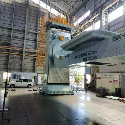 Nhận được đơn đặt hàng thiết kế máy định vị hàn với khả năng tải 50T từ Takamaru, Hi-techs đã tiến hành phân tích các điều kiện máy và triển khai công tác thiết kế nhanh để đảm bảo kì hạn giao hàng. Cấu trúc của máy gồm hai phần thân chính cùng với phần kết cấu nằm ngang kết nối tạo nên hình dạng chữ H. Các chuyển động chính bao gồm lên xuống, nghiêng và xoay. Sau gần một năm thiết kế, gia công và lắp ráp, thiết bị đã được chạy thử thành công.